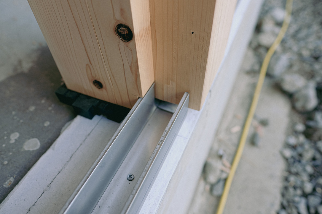 金物の中にある黒いものは、ガラスを載せるためのセッティングブロック