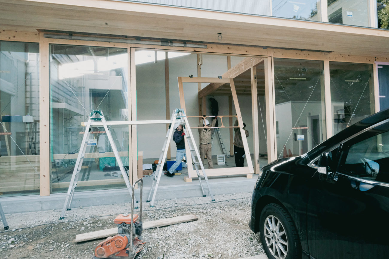 石山のギャラリー 大型建具の取付2025.1.16