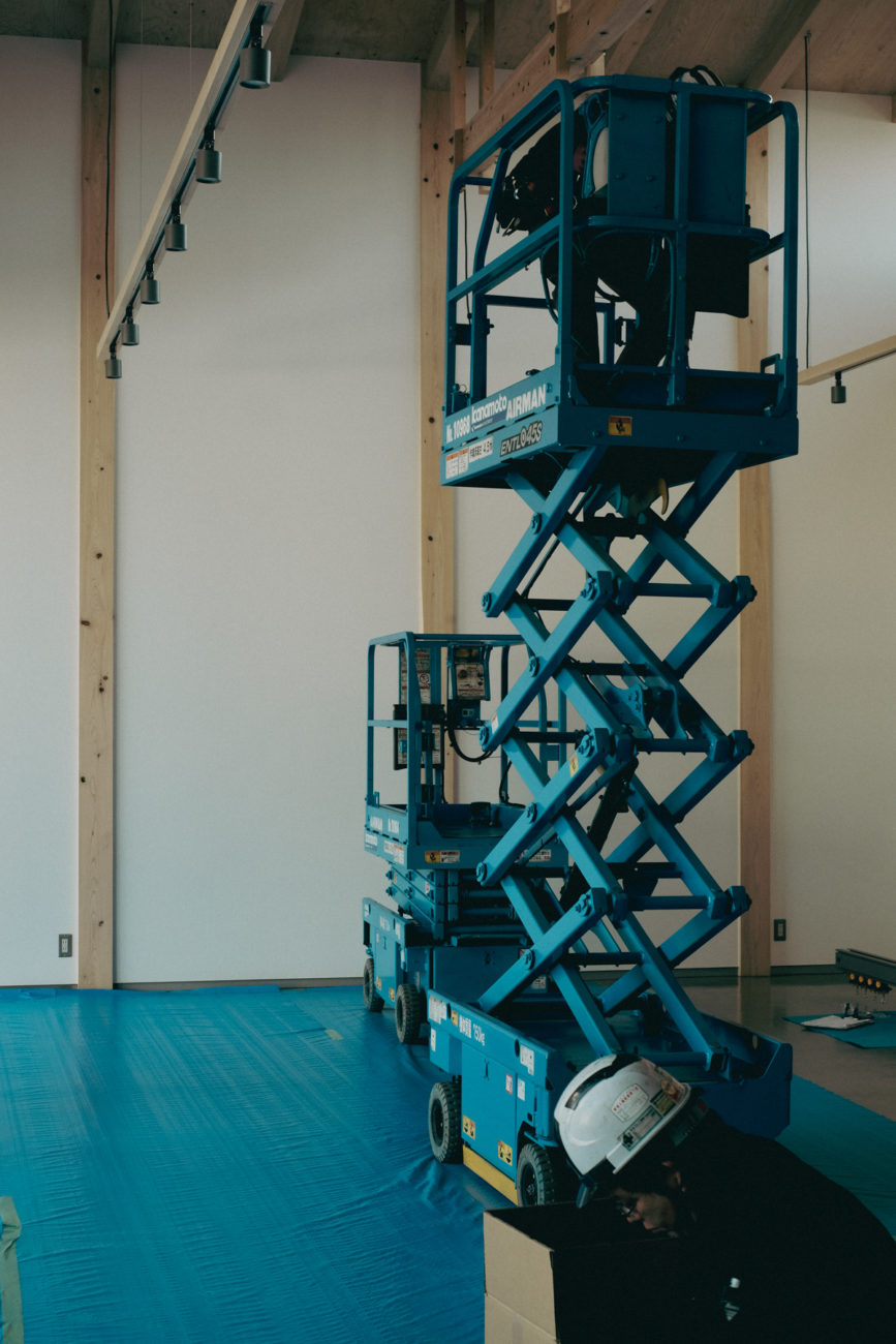 無事に検査済証を取得し、あとは内部の細かな作業が残るのみです。 本日は、ホイスト用のレールの取付けのため現場に行ってきました。