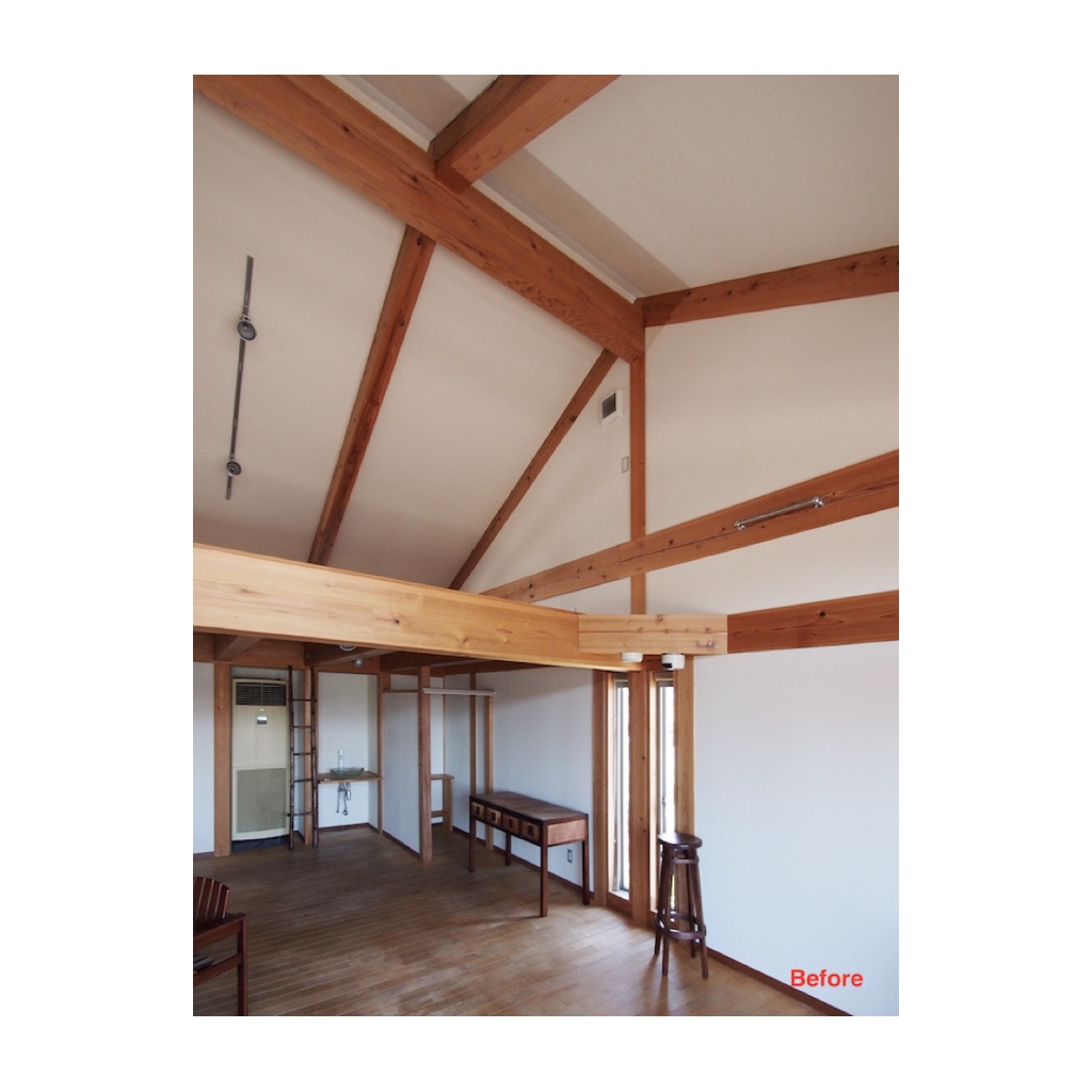 間仕切り壁や柱の塗装、既存床のオイル拭きにはじまり、鏡面台も既製品では合うもの見つからなかっため、図面を起こし、この空間に合うようにオーナーと一緒に制作しました。