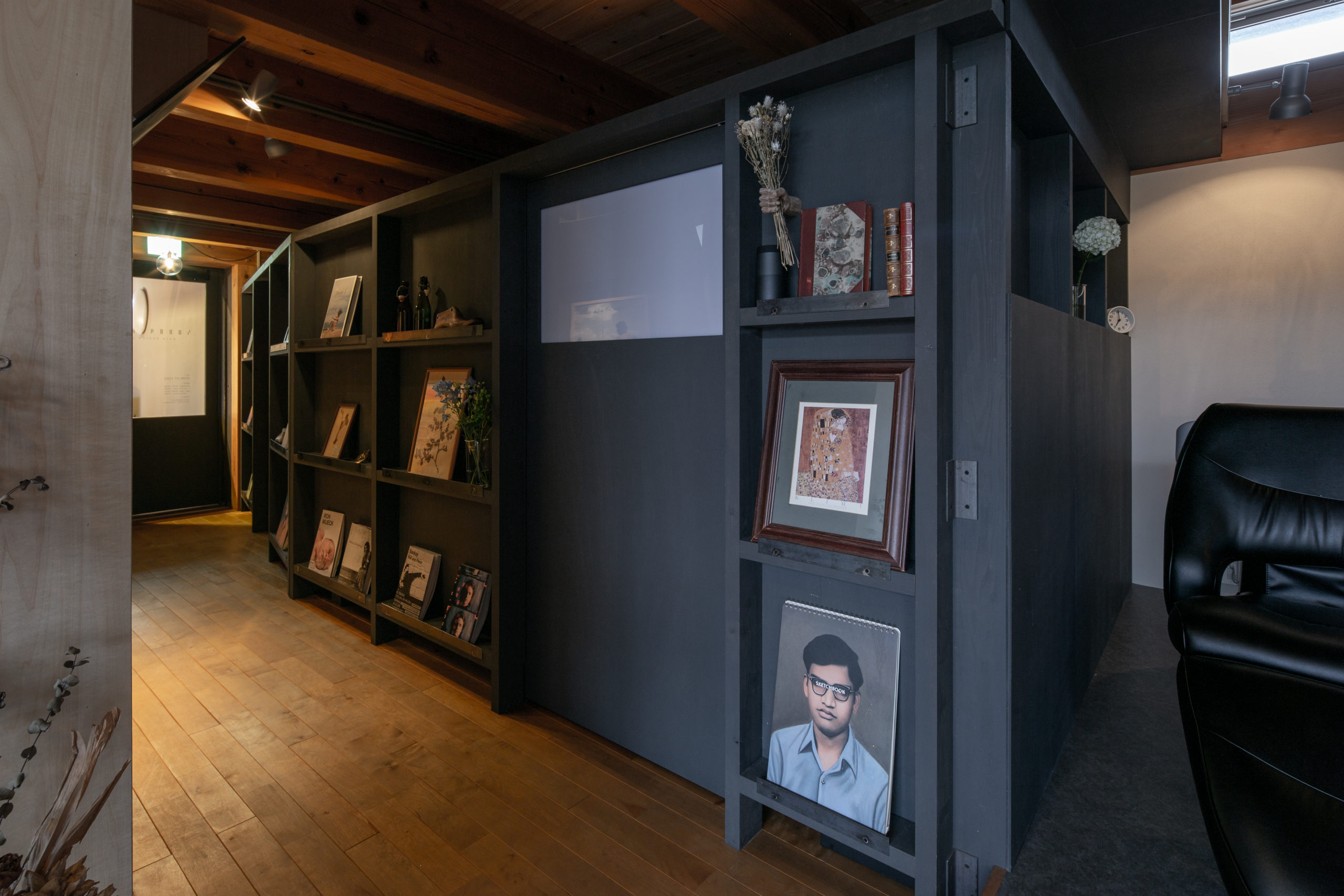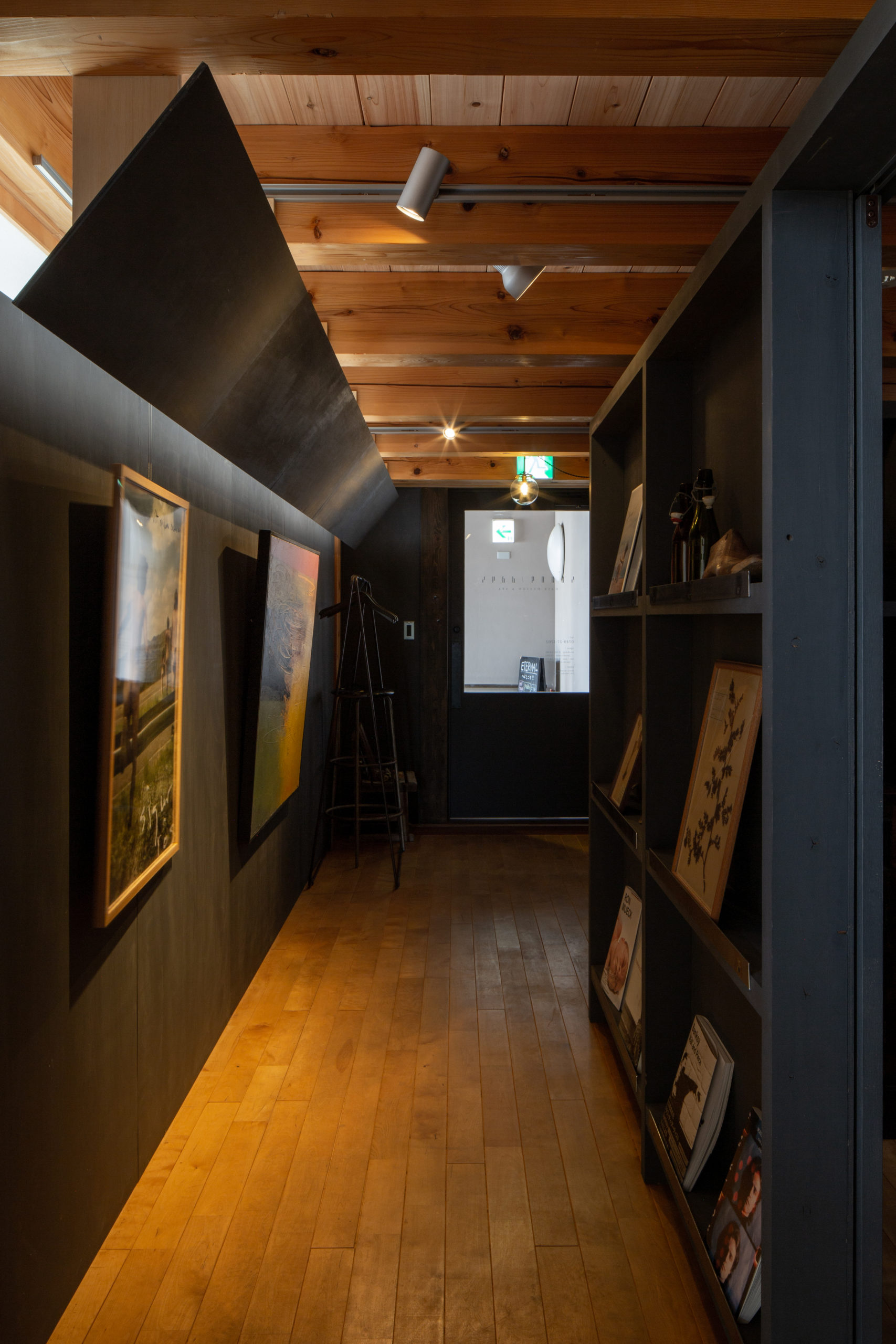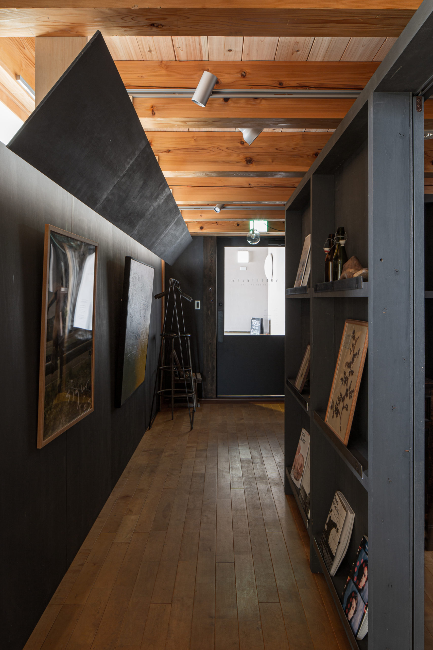 間仕切壁の反対側には、オーナーが集められた絵や本を展示する小さなギャラリースペースを設けました。