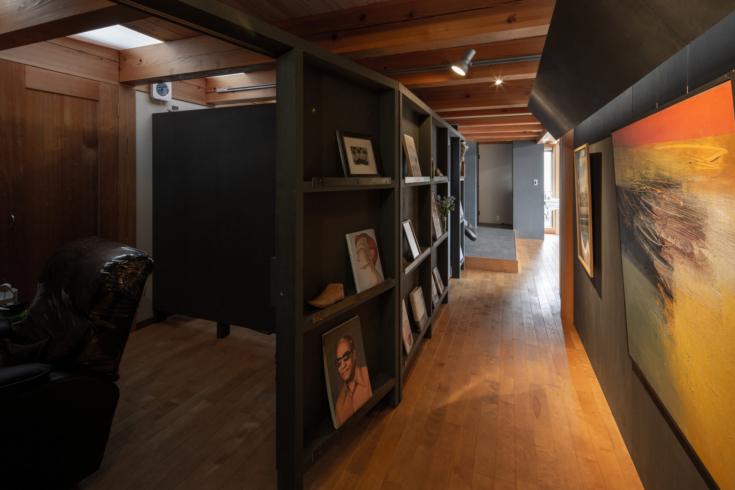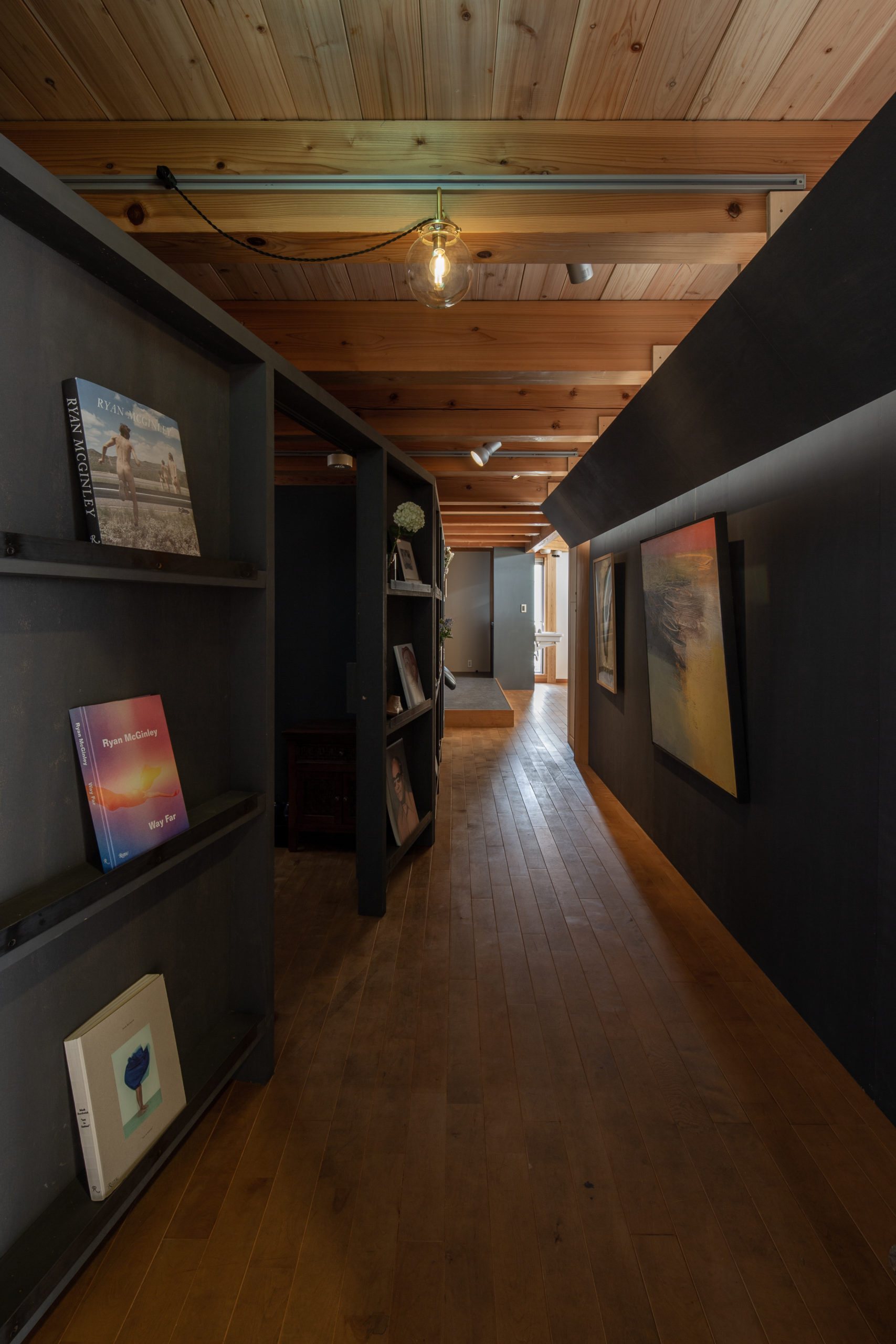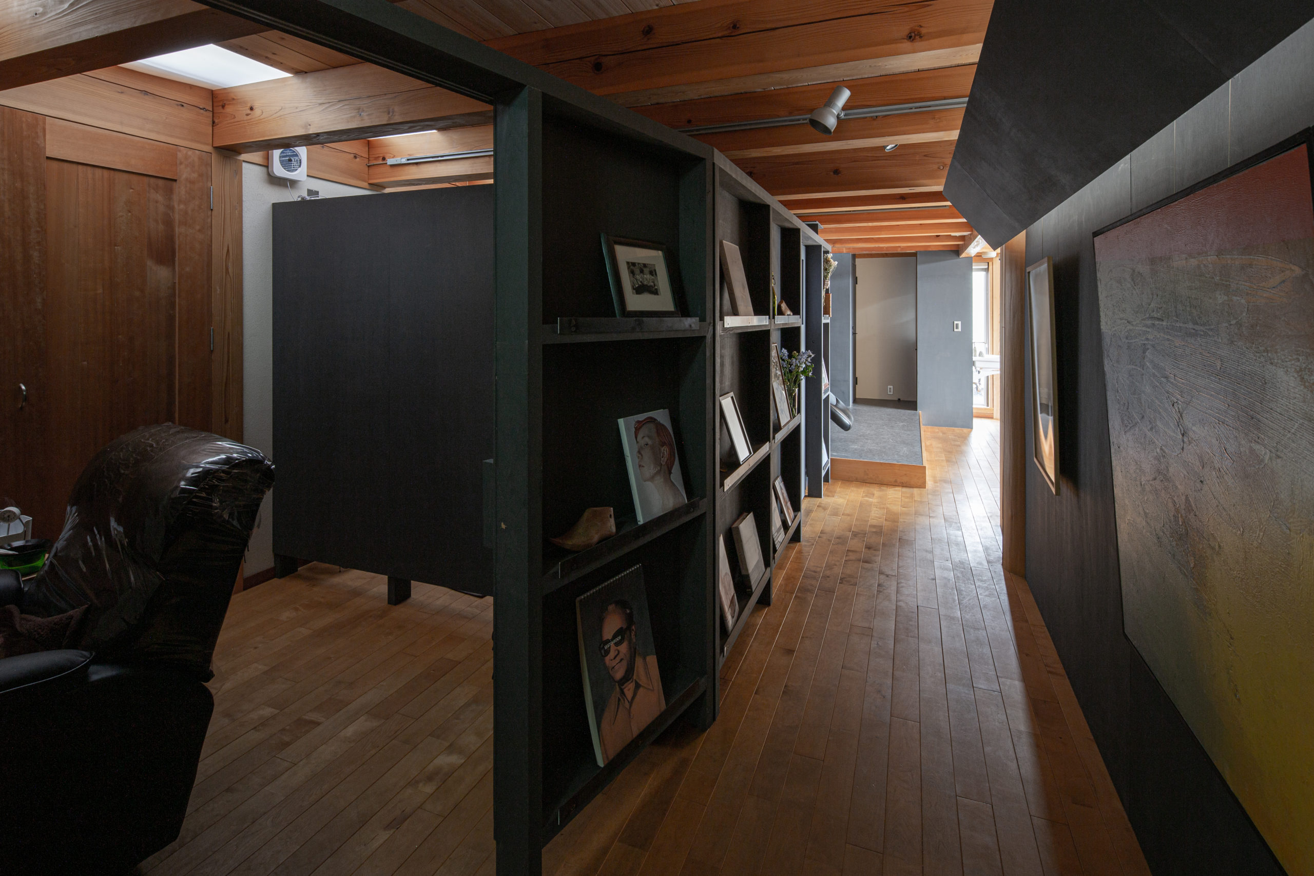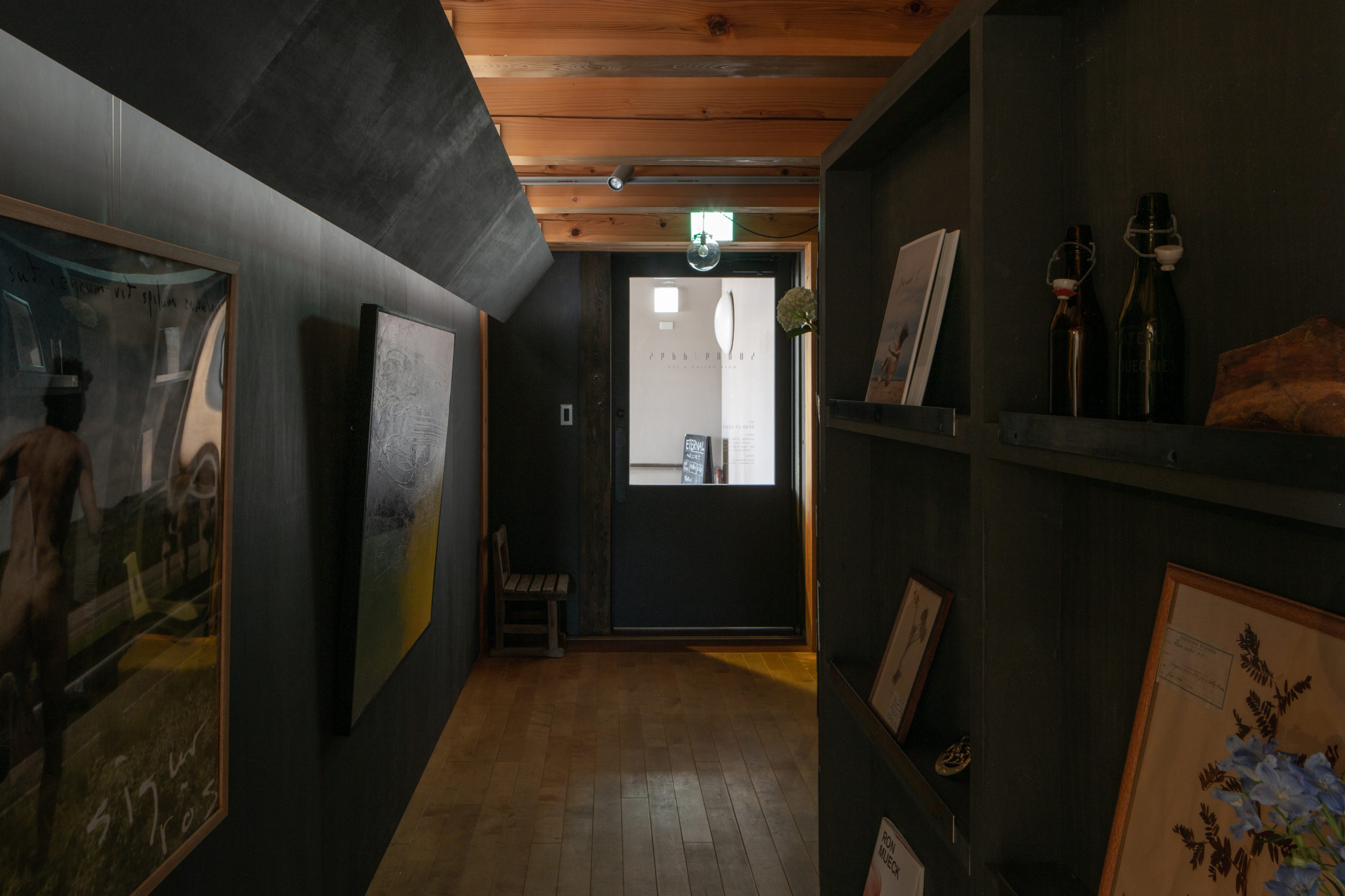間仕切壁の反対側には、オーナーが集められた絵や本を展示する小さなギャラリースペースを設けました。